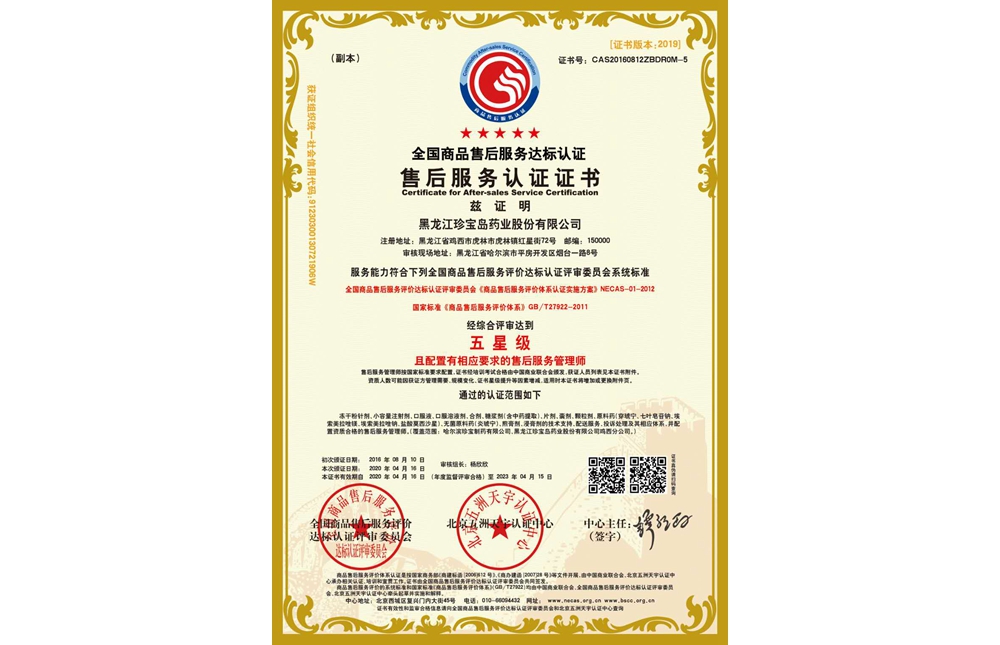 珍寶島藥業(yè)被認定為國家高新技術(shù)企業(yè)、黑龍江省企業(yè)技術(shù)中心、博士后創(chuàng )新創(chuàng )業(yè)實(shí)踐基地和國家級博士后科研工作站等。企業(yè)率先在全國同行業(yè)內通過(guò)了品牌和售后服務(wù)評價(jià)雙體系國家標準五星級認證,“珍寶島”商標被認定為中國馳名商標,連續10年位列中國醫藥工業(yè)百強行列。