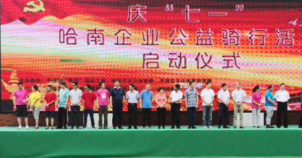 為紀念建黨97周年,由平房區兩新工委、哈經(jīng)開(kāi)區企業(yè)黨委、區文化體育旅游局主辦的“慶七一”哈南企業(yè)公益騎行活動(dòng)于2018年6月30日在哈南健身廣場(chǎng)隆重舉行。平房區委書(shū)記、哈經(jīng)開(kāi)區黨工委書(shū)記劉興閣為巡游隊伍發(fā)令、領(lǐng)騎。區委副書(shū)記李兵代表區委、區政府為活動(dòng)致辭。公司黨委副書(shū)記、工會(huì )主席董志宏出席啟動(dòng)儀式。