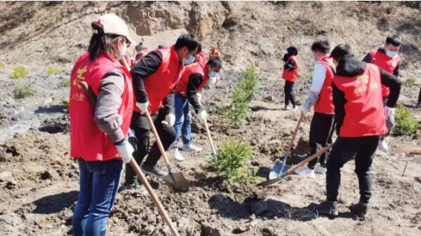 志愿者們參觀(guān)了“保護生態(tài)環(huán)境主題展板”,沿著(zhù)晨光路進(jìn)行“健康徒步”,最后來(lái)到虎林水庫山上開(kāi)始綠化植樹(shù)。大家有的拿樹(shù)苗,有的挖坑,有的培土,忙碌的場(chǎng)面,熱火朝天。一個(gè)個(gè)鮮紅的身影,一顆顆翠綠的樹(shù)苗,一面面飄揚的旗幟,在這片空曠的土地上編織出一幅美麗的畫(huà)卷。
